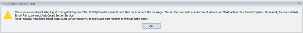 When I login to AutoCount , system prompted error message “There was no endpoint listening at….”