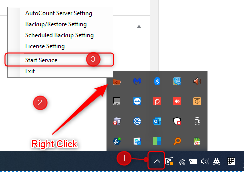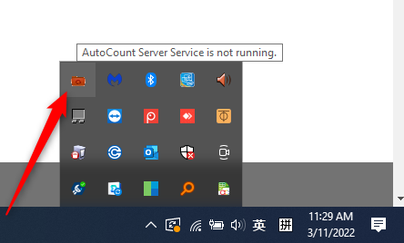 1) Search with Autocount Server Monitor on windows taskbar search and click on it. The icon will appear at taskbar there.