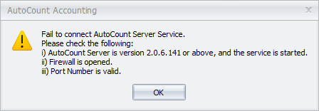 i)AutoCount Server is version 2.0.6.141 or above,and the service is started.