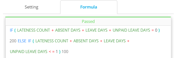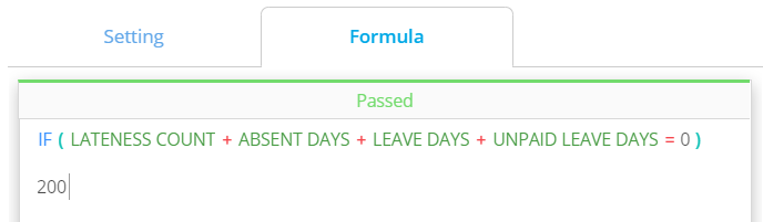 2. Attendance Allowance (RM 200 or Zero) IIF(PAY_LEAVE + NPAY_LEAVE + LATE_HR = 0, AW, 0)