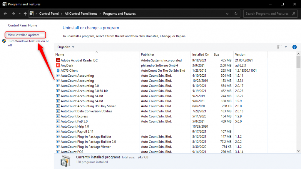 3. Select Security Update for Microsoft Windows (KB5006670) and click Uninstall