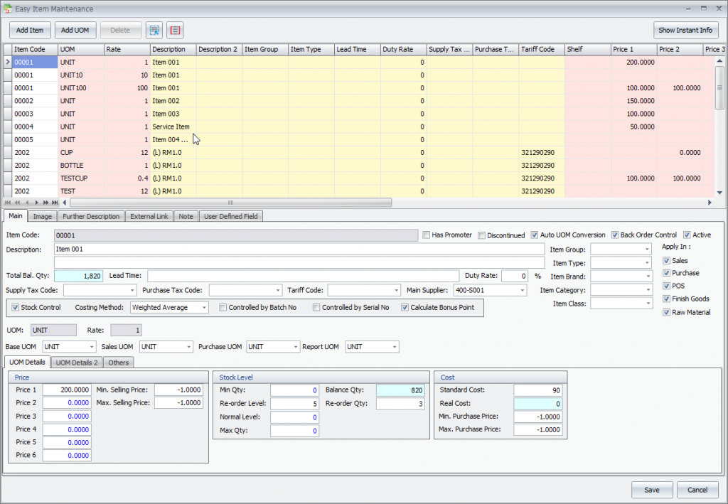 If want to change a lot item info can use autocount “Easy item” function to edit item in one screen.