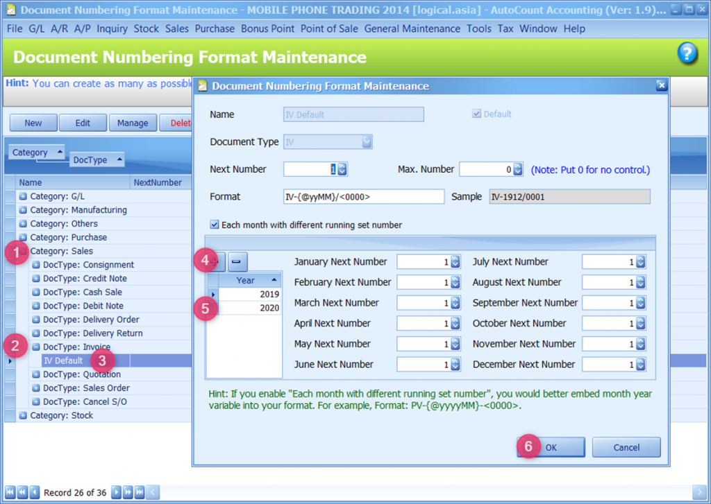 My Invoice Number is 2012/0001(Reset Monthly)How to change to 2021 Year ?