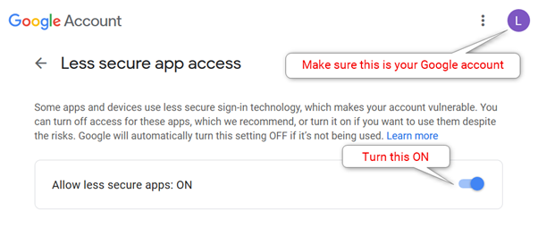 2. Visit the pageĀ https://myaccount.google.com/lesssecureapp