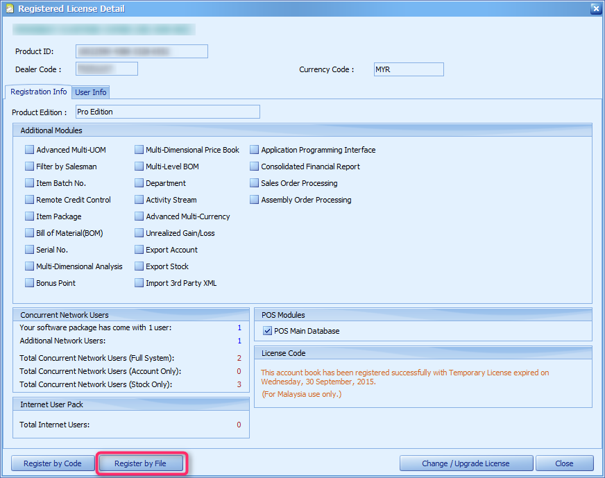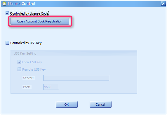 Go to Tools > Program Control > License Control > Click Open Account Book Registration